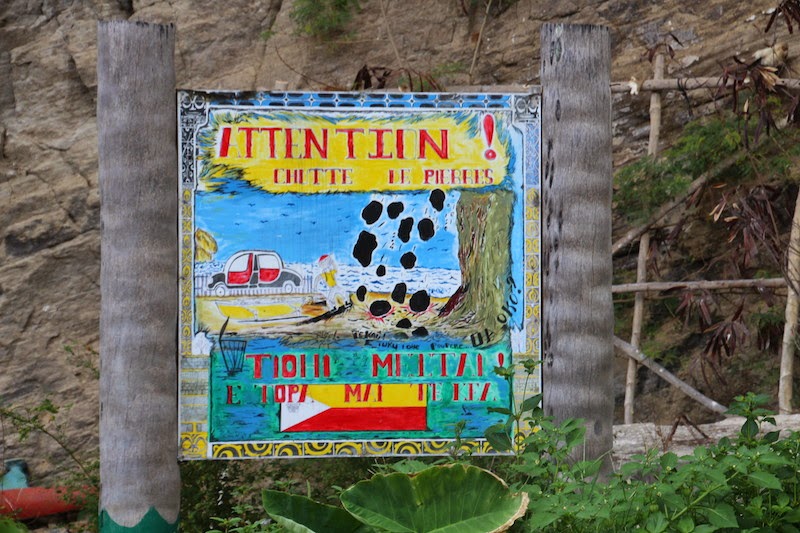 Le chemin qui nous mène de ce coté de l’île est moins fréquenté que celui d’hier, il est donc plus étroit et moins entretenu. Les paysages n’en sont pas moins magnifiques et nous arrivons dans des villages qui nous semblent encore plus au bout du monde !! Là il n’y a pas de magasin, la vie est tranquille et seul les bruits des vagues et des sculpteurs se mêlent au chant des oiseaux…