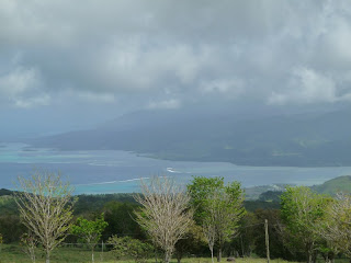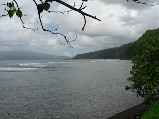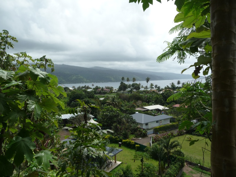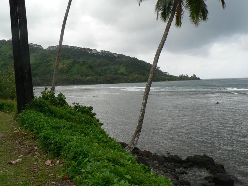 Comme il pleut beaucoup plus sur Taravao qu’ailleurs, (ça c’est apparemment lié à l’orientation des montagnes), le temps est couvert, on décide donc de commencer à prendre la côte est, pour s’éloigner un peu; On espère trouver un coin plus ensoleillé pour la pause casse-croute…