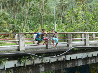 Et des enfants (au passage, des élèves…) qui s’amusent à sauter des ponts…