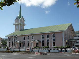 On part direction Papeete, où on fait une première halte aux jardins de Paofai, et au temple de Paofai, qui est le plus important des édifices protestants de l’île.