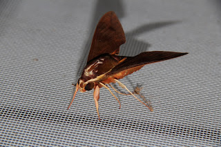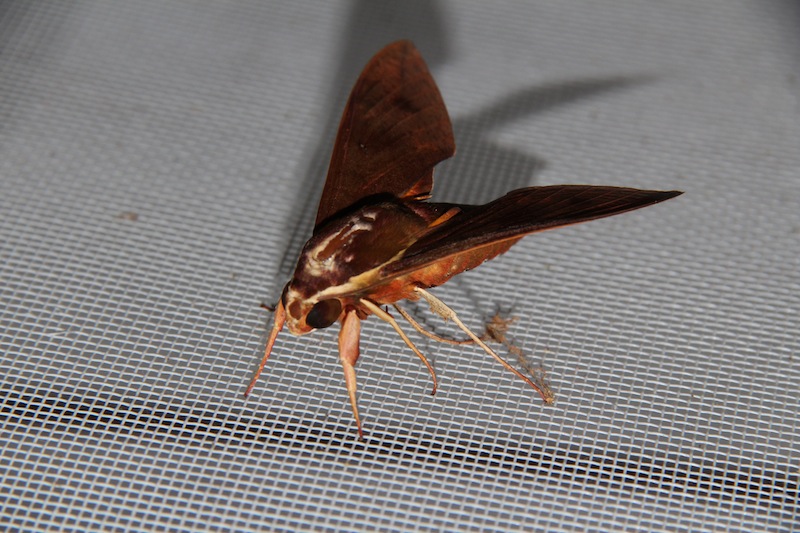 Pratiquement tous les soirs un bruit nous fait réagir, il s’agit d’un papillon de nuit qui est attiré par la lumière de notre maison…