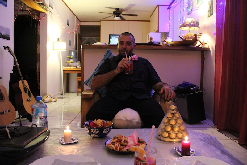 Mais cette petite aventure ne nous a pas empêchés de réveillonner ! Cocktail de fruits en apéro, chips de taro patates douces et autres légumes puis fondant au chocolat pour finir ! slurp !