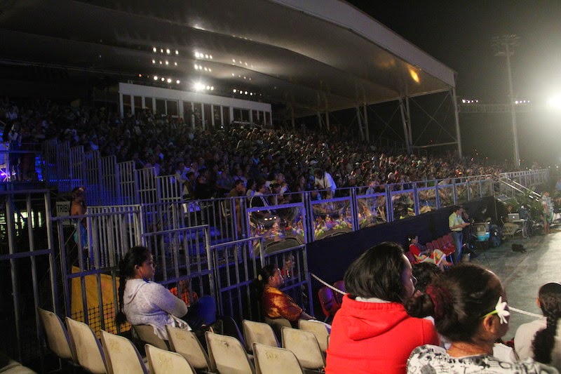 Et voilà donc les troupes en pleine action, les costumes sont magnifiques et très colorés ! (les gradins semblent bien vides sur certaines photos mais il ne faut pas s’y fier, la tribune située en face des danseurs était pleine !!)