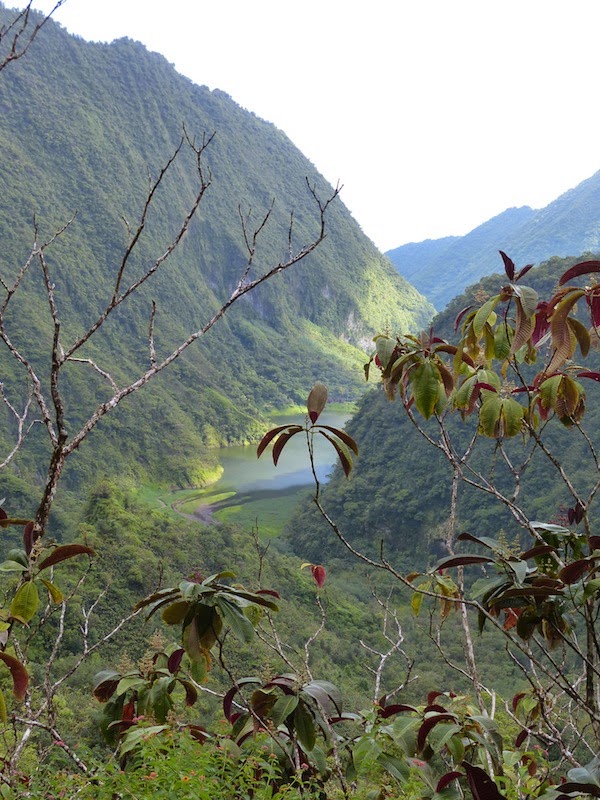 … et de l’autre côté, on est presque arrivé à la sortie de la vallée, sur la cote ouest de Tahiti, mais…la route est barrée et nous devons faire demi-tour juste au dessus du lac Vaihiria