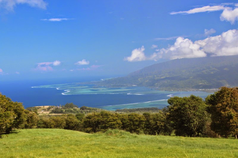 …monter une nouvelle fois sur le plateau de Taravao, traverser ces paysages qui nous avaient fait penser à l’auvergne la première fois que nous sommes venus là, il y a presque 4ans !! Montagnes verdoyantes avec des vaches un peu partout…