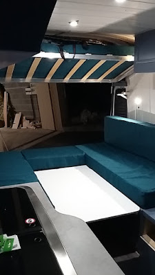 Ca y est, nous avons trouvé une solution pour fermer notre douche, une petite porte faite sur-mesure, pouvant se plier en deux pour s’ouvrir (ben oui, nous n’avons pas beaucoup de place!) et normalement hermétique!