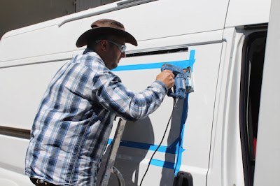 Ensuite on passe aux fenêtres à l’arrière du camion, c’est le même principe…on scotch,