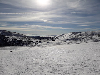 Cela nous permet d’avoir un peu plus de neige (pas sûr !!) mais d’avoir une superbe vue sur le Plomb du Cantal et les vallées environnantes…