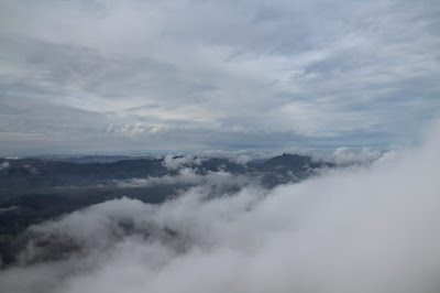 Quand nous arrivons, le ciel n’est pas dégagé, nous avons cependant de la chance car le soleil chasse les nuages et nous pouvons profiter d’un long moment au sommet avant qu’ils ne reprennent l’avantage.