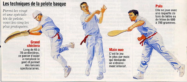 D’abord les règles du jeu : “le principe de la pelote basque est d’envoyer, directement ou après un rebond, la pelote contre un mur principal (le frontis) afin qu’elle retombe sur l’aire de jeu (la cancha).