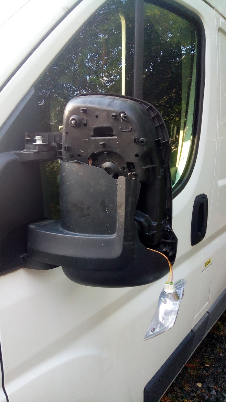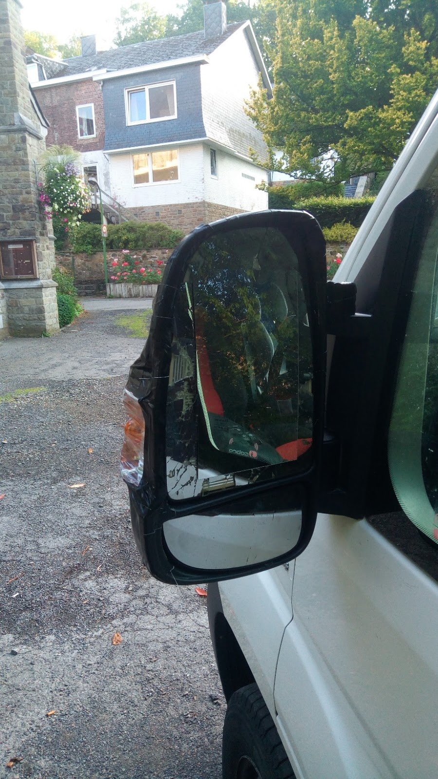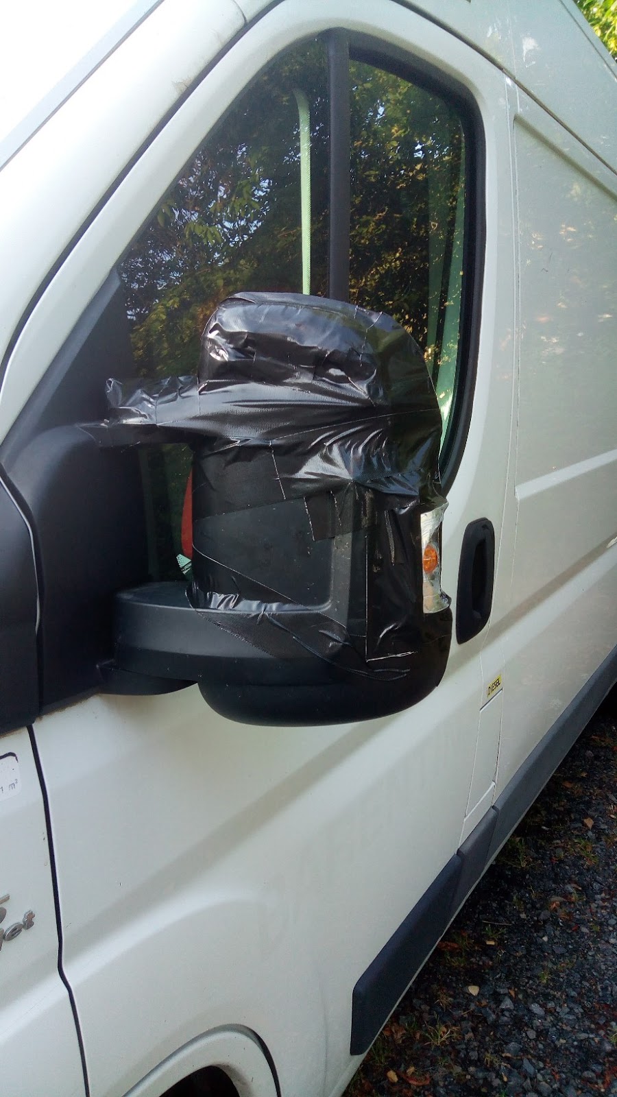 Le rétroviseur tenant toujours le coup, même les moteurs de réglages fonctionnent, nous faisons une réparation d’urgence pour la suite du voyage ! Trop la classe 😜