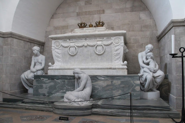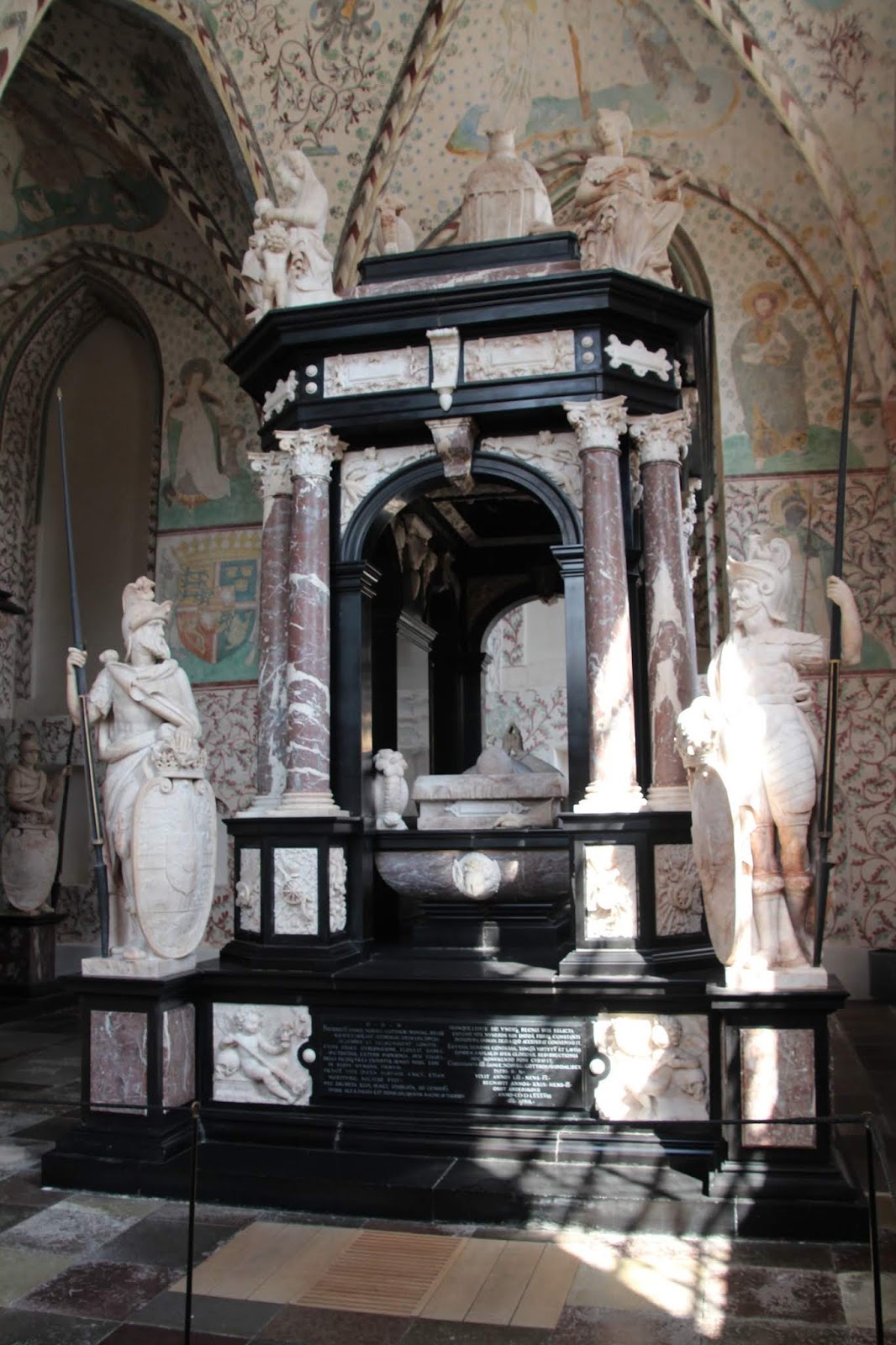 Allons faire le tour de cet ouvrage… Ici sont inhumés 39 monarques du royaume du Danemark, certains avec leurs familles! C’est véritablement un festival de tombeaux plus gigantesques les uns que les autres! 😉