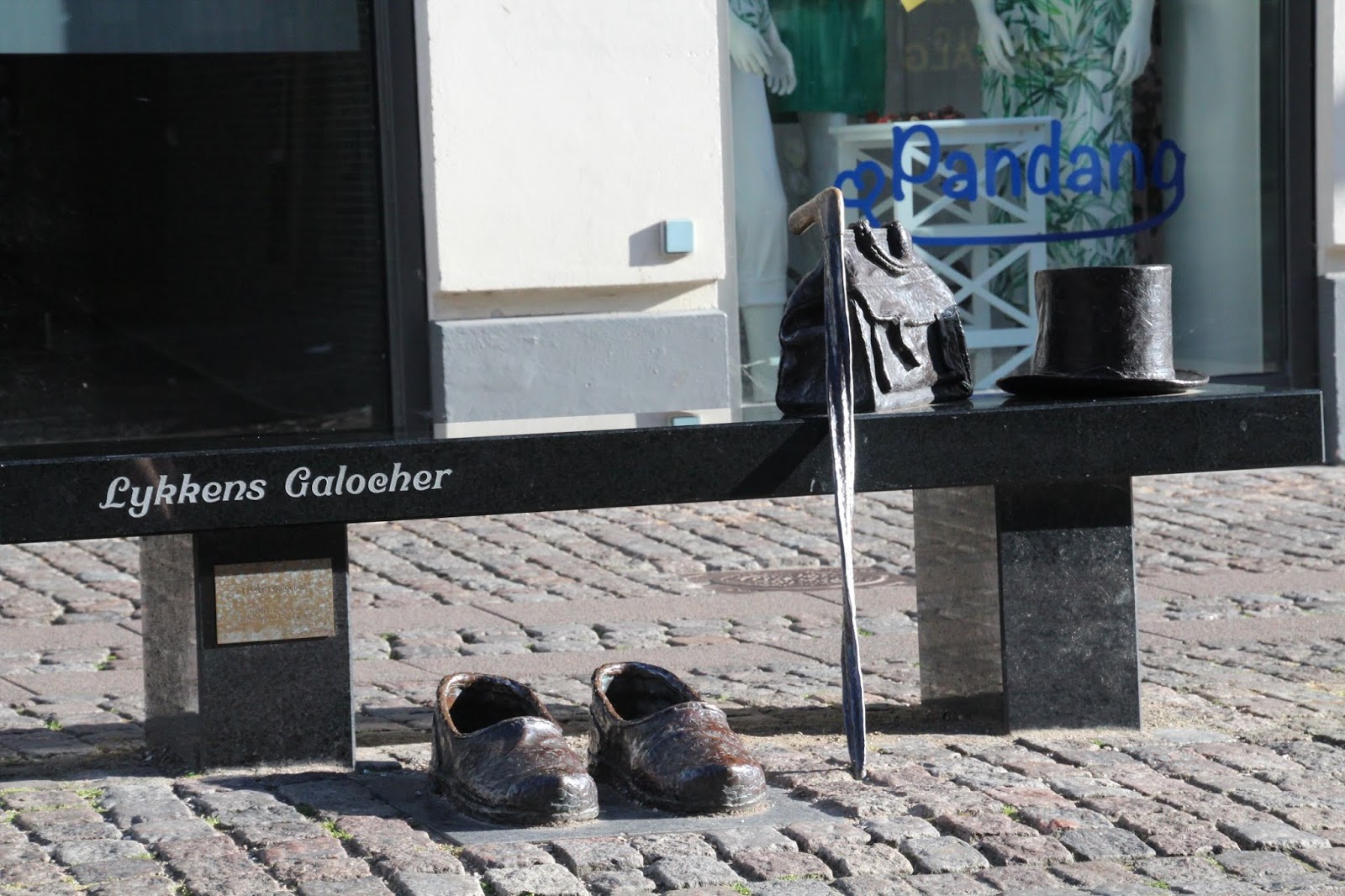 Nous avons même retrouvé les galoches de Hans Christian Andersen! (“Lykkens Galoeher” est le titre original du conte “Les Galoches du bonheur”). Cet auteur (vous connaissez certainement “les contes d’Andersen”) est danois, il est né à Odense!