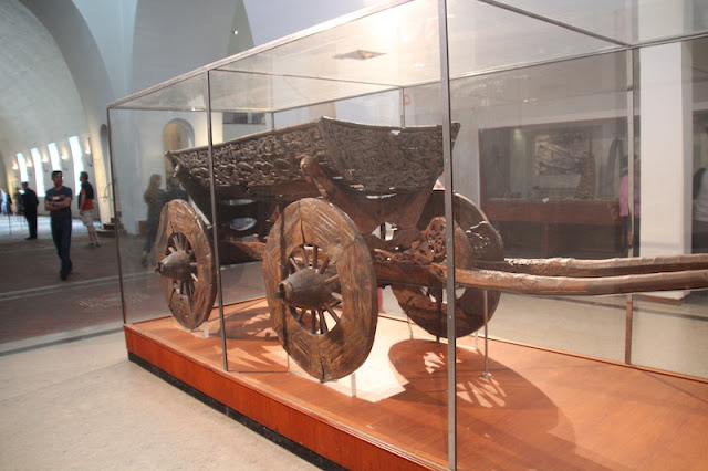 Au fond du musée, on peut admirer les objets retrouvés sur ces drakkars, en voici quelques uns comme ces chariots funéraires :
