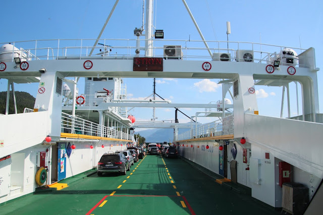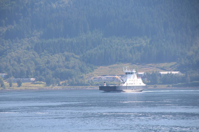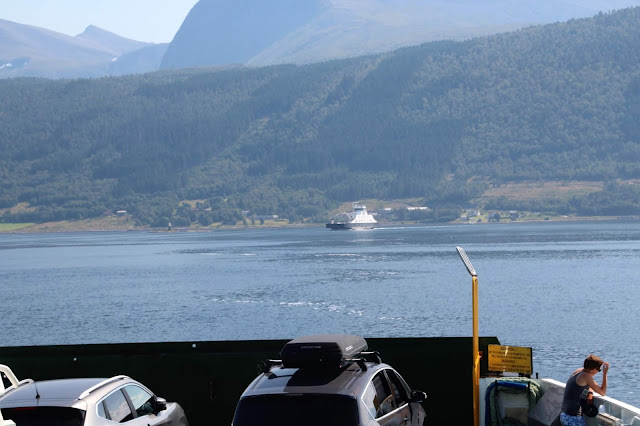 Et même des ferrys ! Forcément, il y a tellement d’eau dans cette région que certains endroits ne sont accessibles qu’en ferry. Dans d’autres cas ils évitent de très longs détours. Ici nous traversons Langfjorden entre Nesjestranda et Åfarnes.