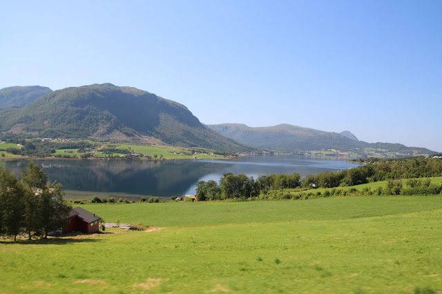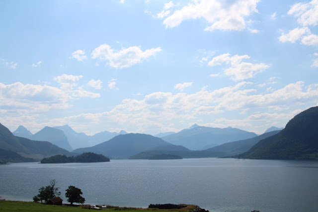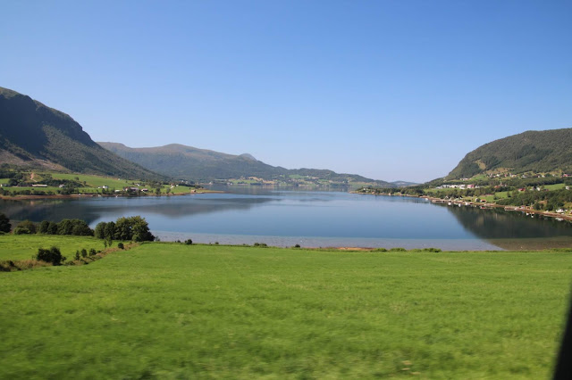 À Molde nous prenons la route 64 et nous commençons à arriver dans les montagnes qui surplombent les fjords…