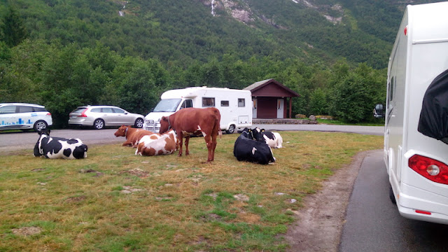 Le temps de faire l’aller-retour à pied, les averses reprennent, nous trouvons tranquillement de quoi nous poser pour la soirée, dans le petit village de Fjaerland…