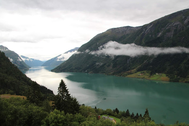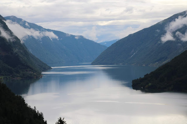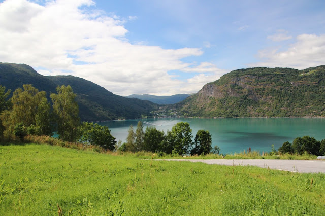 Le soleil finit par revenir après une petite journée d’absence et nous prenons la route 55 via Sogndal en direction de Solvorn.