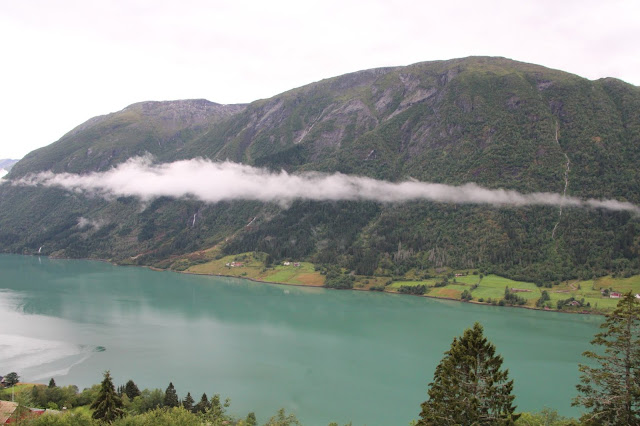 C’est sous la grisaille, et même la pluie, que nous avons passé notre étape à Fjærland, du coup nous en avons profité pour rattraper notre retard sur le blog (vous l’avez sûrement remarqué 😉).