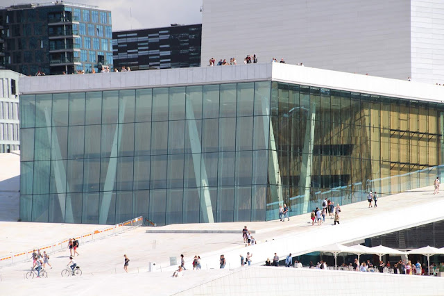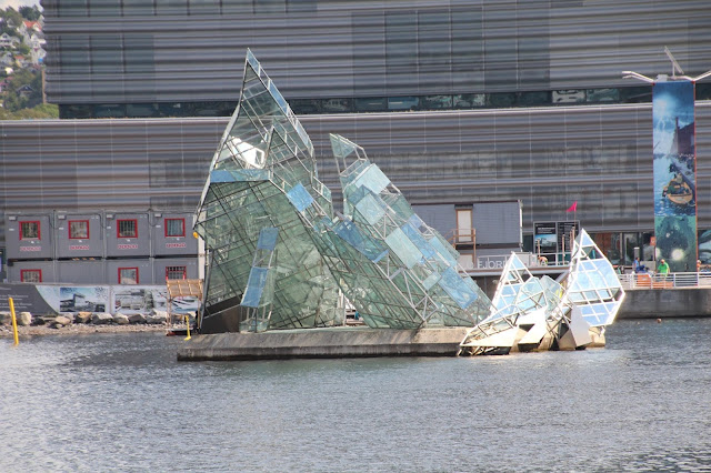 Cette sculpture géante flotte autour de l’opéra au gré du vent et des courants, elle peut se déplacer autour de l’édifice et représente elle aussi de la glace (comme lorsque le fjord est complément gelé).