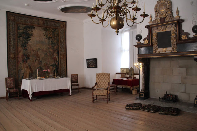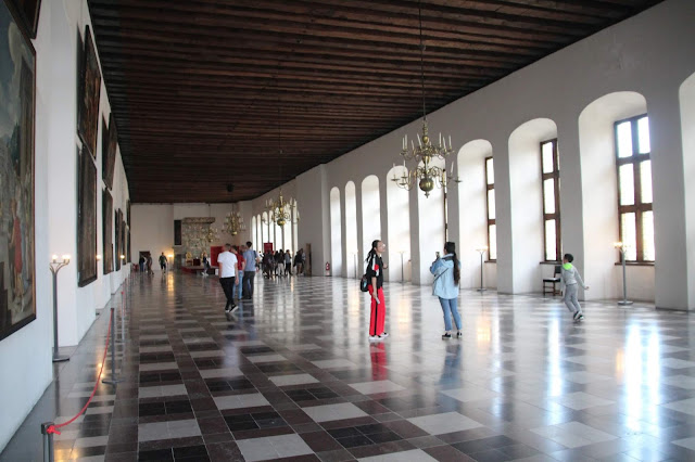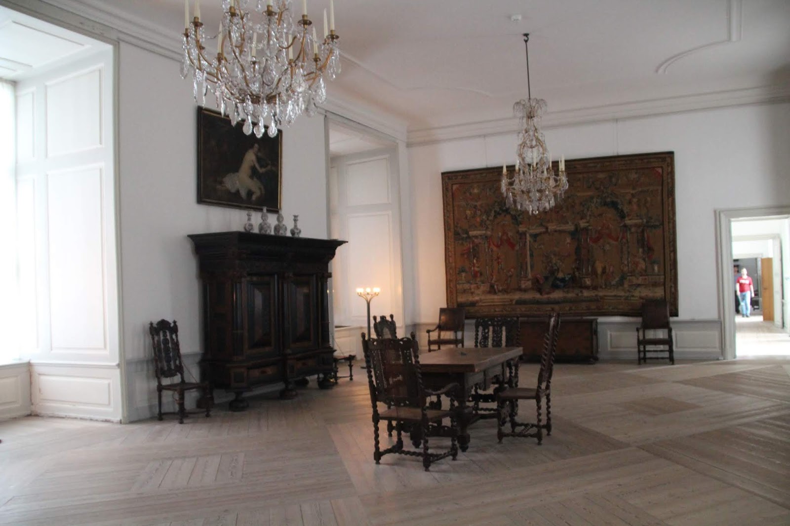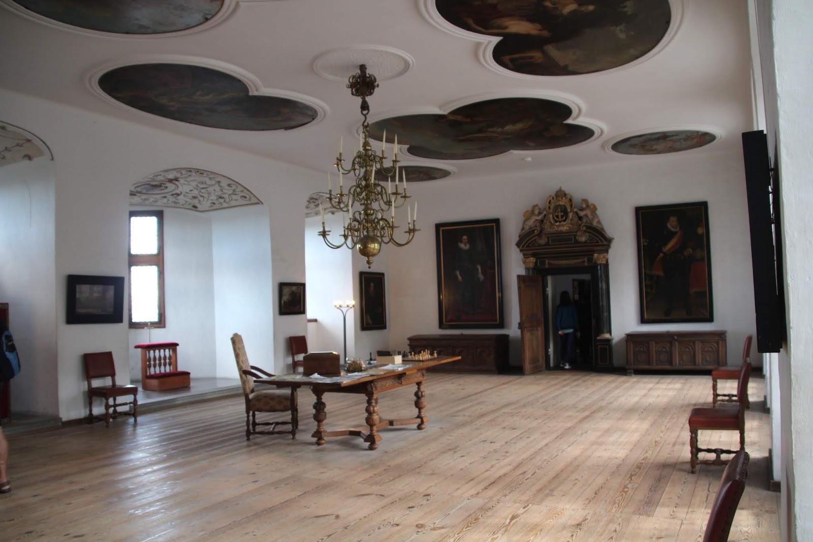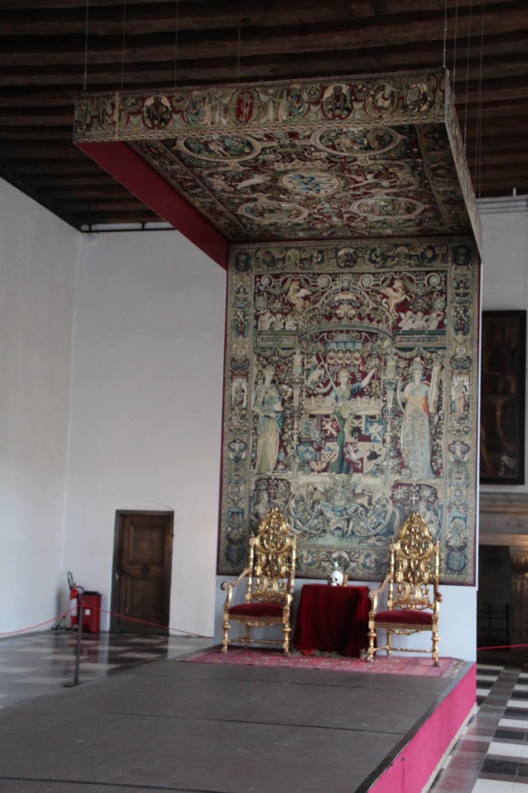 La salle de bal, 62m x 12m est impressionnante (les audiences y avaient lieu)! Une scène est installée au fond, pour une pièce d’Hamlet apparemment !