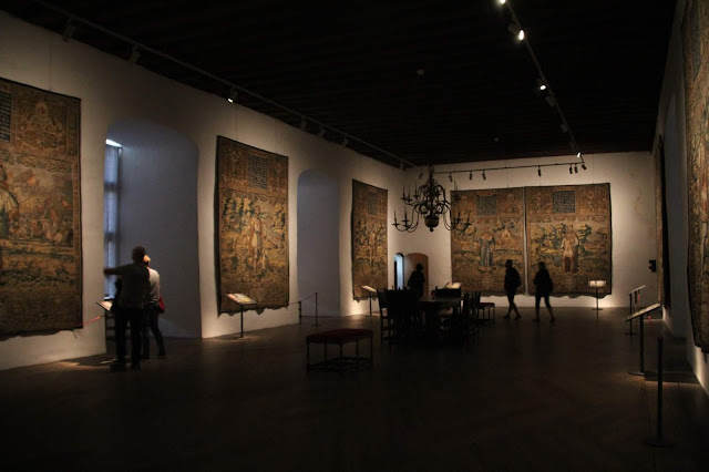 Il y a beaucoup de tapisseries d’époque, les plus anciennes sont conservées à l’abri de la lumière avec une hydrométrie contrôlée.
