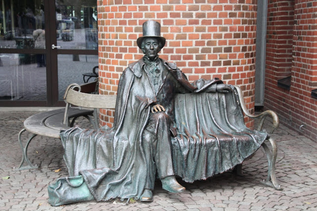 On trouve aussi un peu partout des statues du célèbre auteur, comme celle-là !