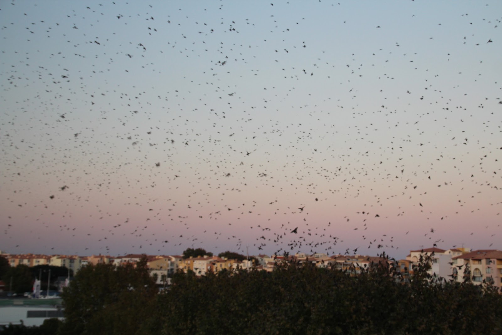 Des milliers d’oiseaux sont venus passer la nuit dans les arbres au dessus d’un parking, c’était impressionnant de les voir tournoyer avant de se poser… une belle cacophonie !! Heureusement pour nous, une fois tout le monde en place ils ont été très courtois avec leurs voisins et n’ont pas fait de bruit !!