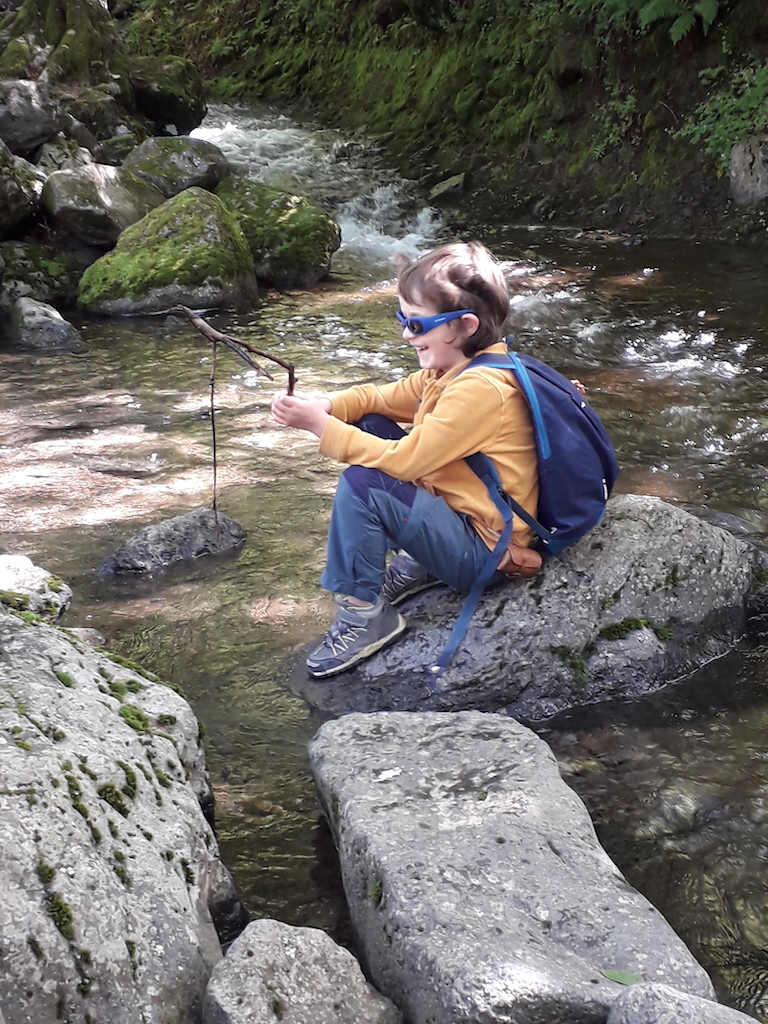 … après avoir sauté sur les rochers, pêché avec un bâton… 😊 … nous prenons la route du retour! C’est le même chemin mais dans l’autre sens!