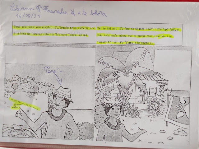 Devoirs du soir, nous découvrons la lecture en tahitien…!😄 (va falloir que l’on s’y mette nous aussi!!!)