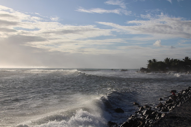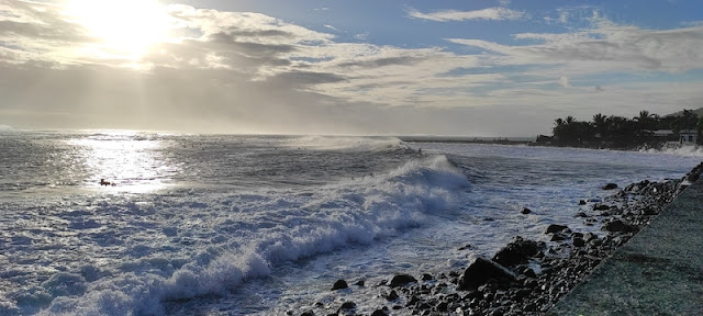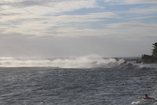 A la presqu’île, la célèbre vague de Teauhupo’o a pris des dimensions extrêmes (ci-dessous un mini-reportage)